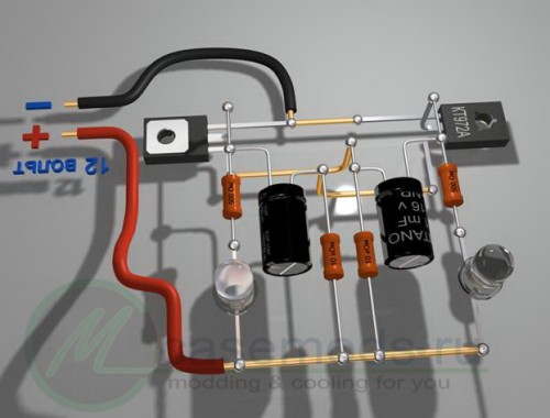 проводом, и этот провод припаивается к минусу конденсатора 6800 мкФ.