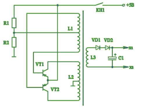 L1 - 8 витков провода ПЭЛ диаметром 0,4 мм с отводом от середины; L2 -