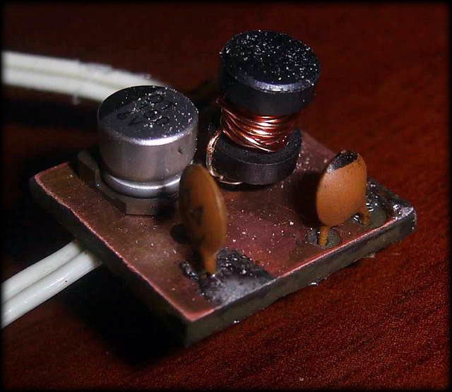Дроссель L1 я намотал на шару, микруха умная, сама во всем разберется). Я намотал 15 витков проводом 0.5мм на дросселе от компьютерного БП. Внутренний диаметр дросселя 2.5мм,