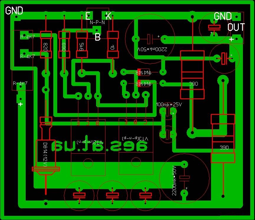 На схеме представлен регулятор по плюсу, а на печатке по минусу, если собрать две схемы по плюсу и минусу то получится двух полярное питание. Регулятор по плюсу и минусу отличается лишь полярностью транзисторов p-n-p или n-p-n и установкой электролитов!