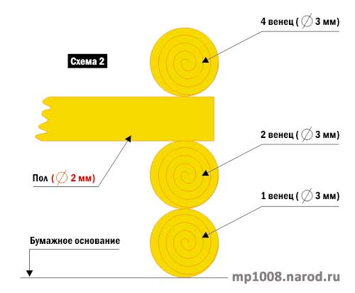 Шаг 2. Наклеиваем первый венец по жирной линии основания. Чуть ниже я покажу, как вырезаются палочки (начиная с шага 13), если кому-то это необходимо посмотреть более подробно.