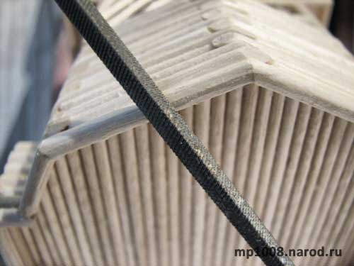 Шаг 13. Сейчас я покажу, как отмерять, отрезать и клеить кусочки палочек для постройки. Возможно, это следовало показать раньше. Итак, готовимся к укладке очередной палочки. Будем приклеивать ее на это свободное место.