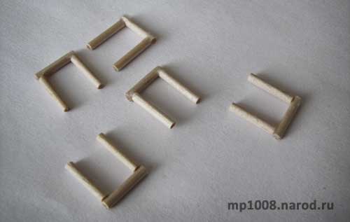Шаг 18. Пришло время подумать о том, на чем будут сидеть посетители. Изготавливаем 5 одинаковых подпорок. Склеиваем их отдельно друг от друга - это будут основания для скамьи.