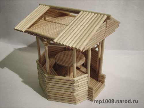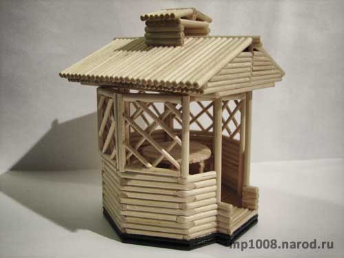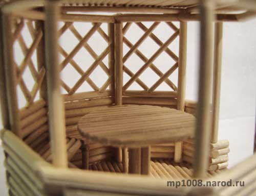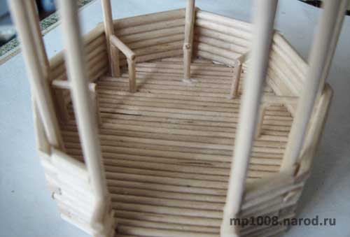 Шаг 19. Затем приклеиваем их на свои места в беседке. Можно было бы ограничиться подпорками в виде буквы Г, однако для простоты работы я взял форму П.