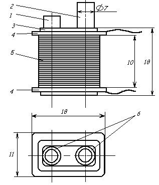 Каркасы обернуты бумажной лентой 3, поверх которой намотана катушка L2