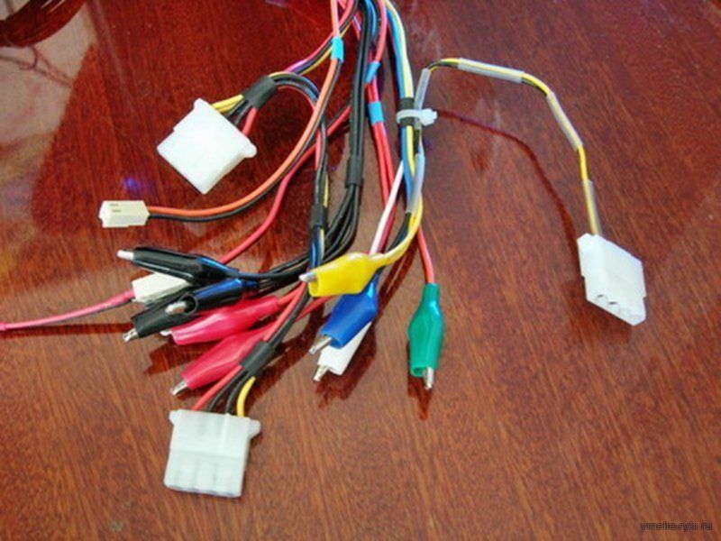 Припаиваем к ним «крокодильчики» соответствующего цвета. В дальнейшем это позволит получать различные напряжения, комбинируя их. От желтого и синего проводов делаем отводы (не забыли, что нам надо 24 В заполучить?) и к ним припаиваем molex–разъем. С molex’ом проблем возникнуть не должно, т.к. разобрать его очень легко. Можно покрасить его, чтобы отличать от остальных и не подключить туда что-нибудь по ошибке. Можно припаять 3-pin разъемы для вентиляторов и 2-pin для светодиодов (не забудьте резистор) – это потом пригодится.