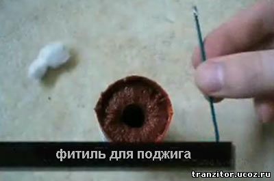 После того как вся масса будет тщательно перемешана, даем остыть. Когда она достигнет температуры, что можно касаться руками, надеваем резиновые перчатки и ложкой берем массу и напихаем в заранее приготовленную коробку от фотопленки или пустые спичечные коробки, поправляя руками. Массу наталкиваем плотно, без пустот.