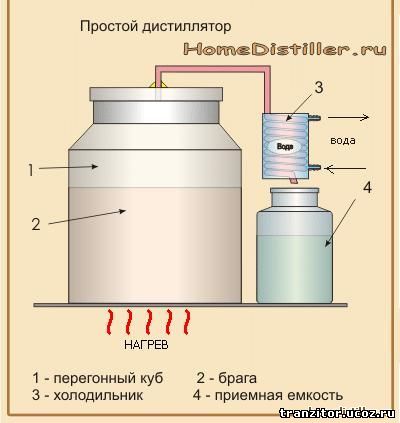 в скороварку брагу, к холодильнику подвести пар трубкой от