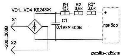 измерительного прибора. На этом настройку можно считать законченной.  Рис.2. Схема для более точного измерения сетевого напряжения На