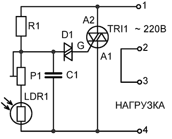 коммутатор, выключатель реагирующий на свет, автоматический выключатель освещени, фотореле, схема">