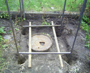 III) Потом делаем деревянную опалубку и все заливаем все цементом, не забыв оставить дырку для воды.
