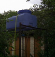 осталось сверху установить пластиковую бочку для воды. И обшить каркас
