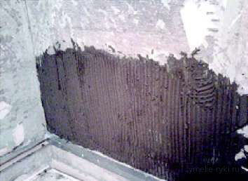 Основной этап. Когда высохнет грунтовка, то приготовьте клеи для керамической плитки. Можно использовать любой клей на цементной основе. Проконсультируйтесь у продавцов.