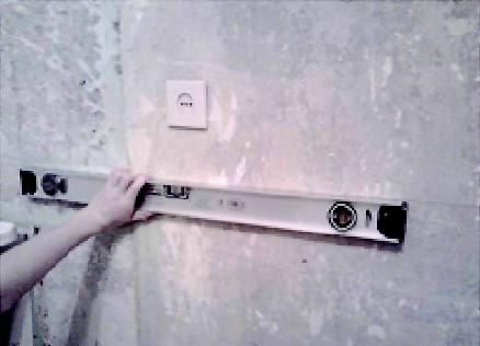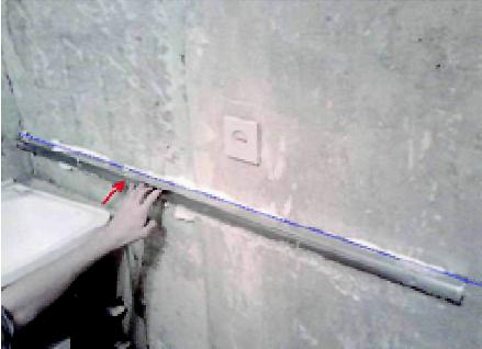 Проведите по метке горизонтальную линию, с помощью строительного уровня.