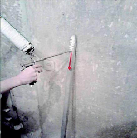 Подождите 10-15 минут, чтобы пена немного подсохла и затем приложите профиль снова к стене, ровно по горизонтальной линии.