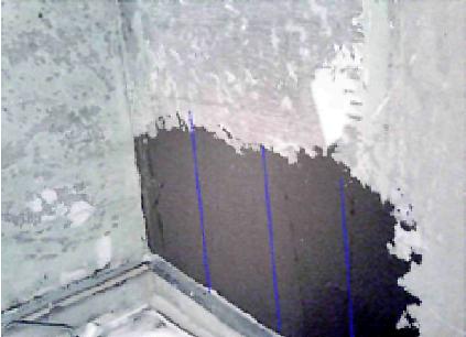 Подготовительный этап. Подготовьте стены. Для этого сделайте, с помощью перфоратора или молотка, не очень глубокие насечки, с шагом 4-5 см, по всем стенам, где будет плитка. Это делается для того, чтобы плитка держалась лучше. В процессе выкладывания плитки, эти выбоины заполняются раствором. Если Вы предварительно выровняли стеку шпаклёвкой,то насечки не надо делать.