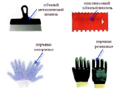 В работе можете использовать зубчатый шпатель, металлический или пластмассовый,перчатки резиновые или матерчатые.