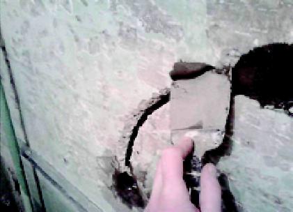 Сделайте отверстие перфоратором для внутренней розетки и подравняйте внутри цементной смесью (чтобы отверстие получилось круглое).