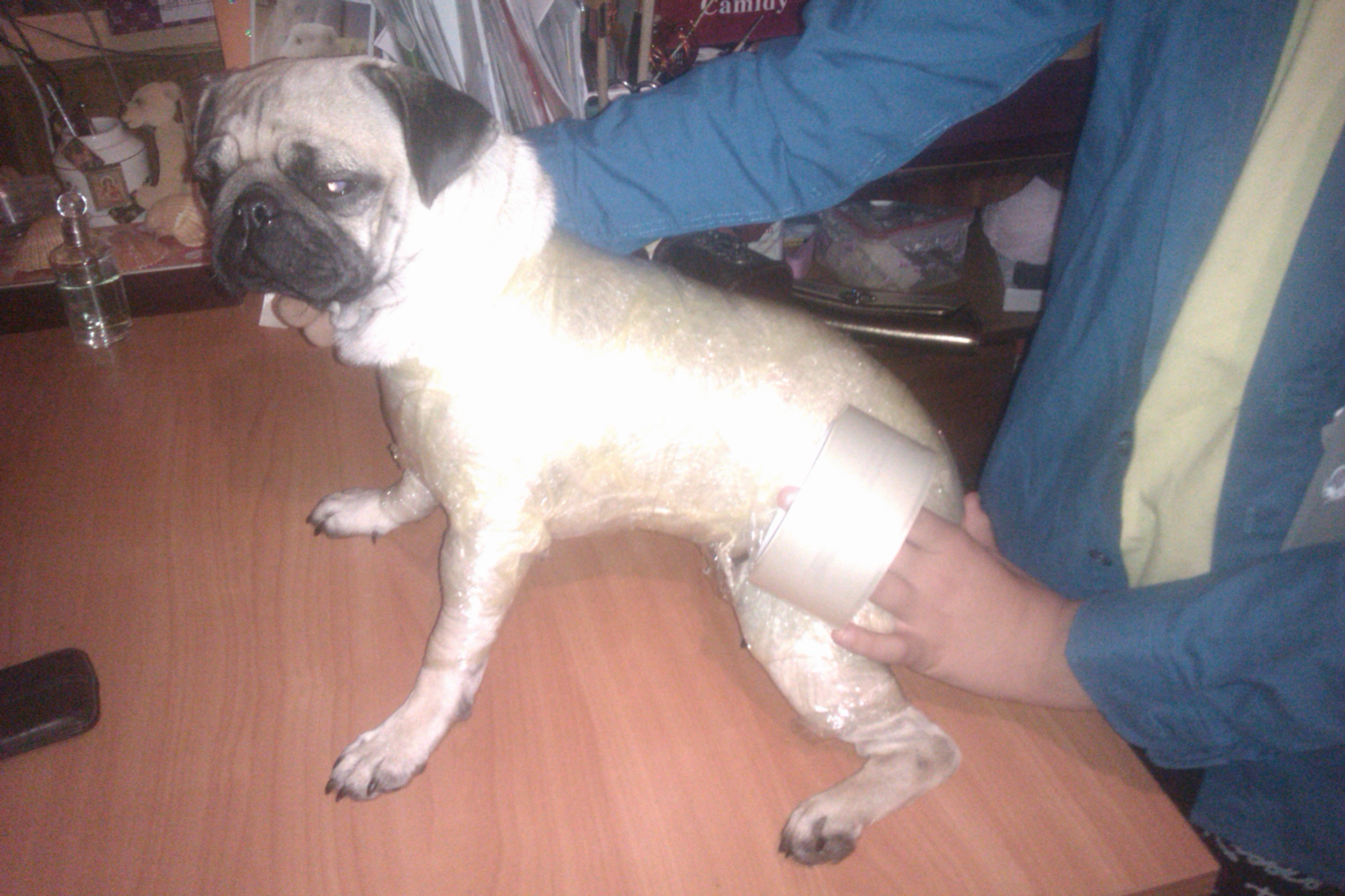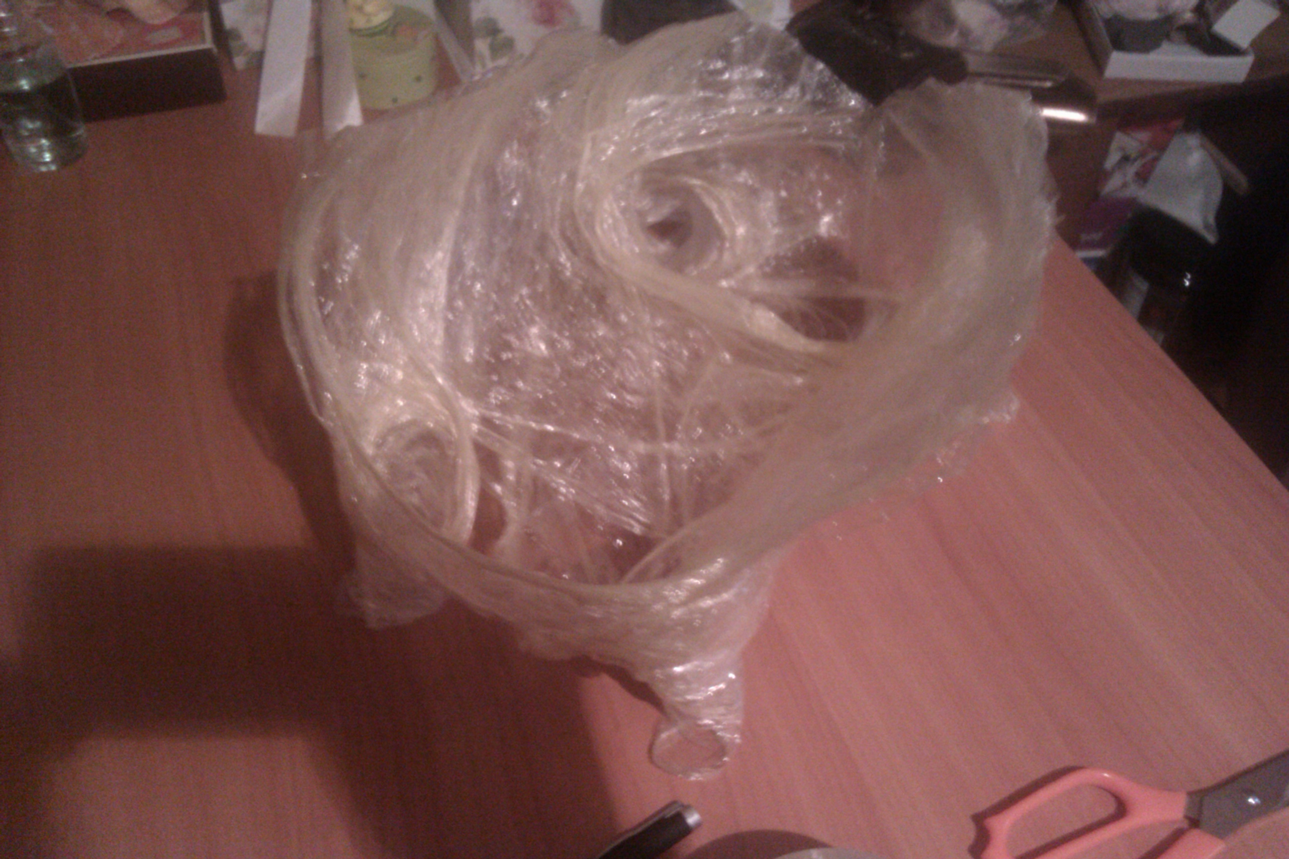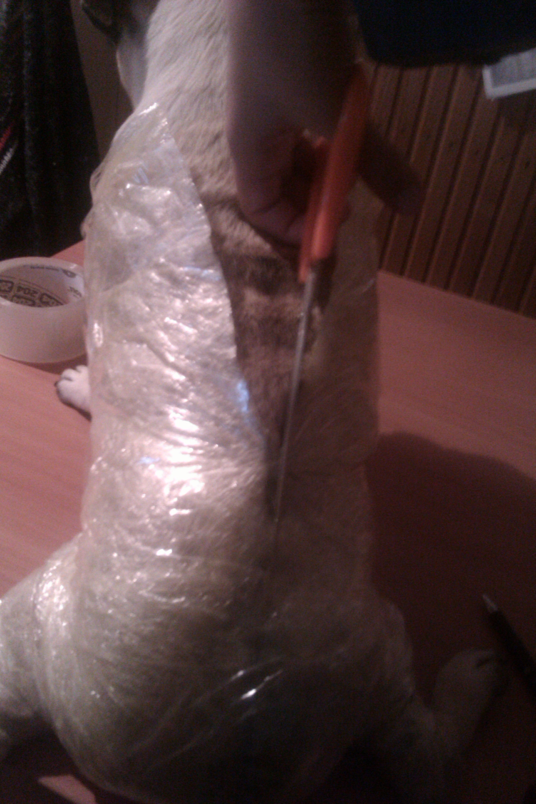 1. Обматываем нашу фигуру пищевой пленкой без "пробелов" не беспокойтесь, (собачке не больно)))) она просто в шоке, такого с ней еще не делали)