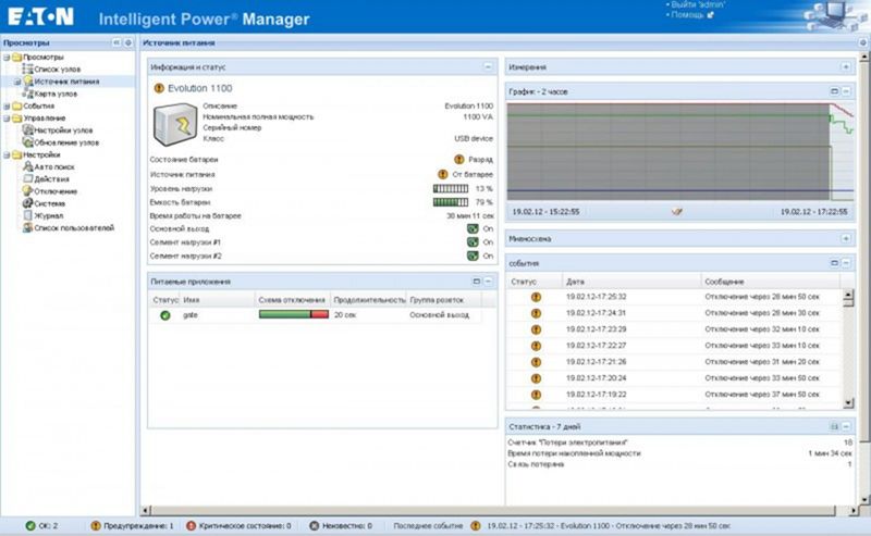 панели управления ИБП мне бодренько показывали про почти час работы от