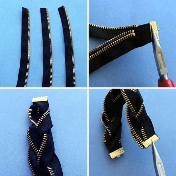 С давних времен, да пожалуй с момента появления человечества, женщинам было свойственно украшать себя. Одним из самым востребованным и в то же время самым очаровательным и простым украшением всегда был браслет. Этот аксессуар выгодно подчеркивает завершенность всего образа. Используя разные виды браслета можно с легкостью использовать один и тот же наряд в разных качествах: как деловой костюм или же как костюм для деловых переговоров, или же как наряд для отдыха в баре; как изысканный наряд для коктейля или как простой наряд для похода на пляж. Все зависит только от вашего умения подбирать правильные аксессуары и от вкуса. Такую безделушку можно купить в любом магазине бижутерии, но можно и сделать самому. Если у вас руки растут из нужного места и у вас есть вкус то приложив немного усилий и настойчивости можно сделать самый оригинальные и красивые браслеты . Изделия ручной работы всегда ценились за свою неповторимость и индивидуальный подход. Если же вы не умеете или не хотите этим заниматься, или у вас просто огромная нехватка времени тогда, такой аксессуар можно приобрести. А для остальных владелец золотых ручек несколько идей как сделать браслеты разных стилей своими силами. Материал для любимого аксессуара женщин может быть самым подручным и довольно таки разнообразным. В общем, все, что вам понравится и все, что вы уже давно хотели выбросить сгодится. Предлагаем небольшой мастер класс для самых смелых, модных и умелых. Первый вариант - браслет из молнии. Не ослышались, именно из ненужной молнии которая уже давно потеряла свою актуальность среди ваших вещей так, как старая и не застегивается. Красивый, стильный браслет на каждый день. Единственным дополнением которое нужно отдельно приобрести - застежка для браслета. Таковы продаются в любом из магазинов бижутерии за сущие копейки.