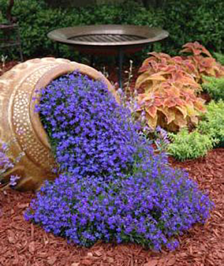 Вот такой вот вылившейся из кувшина ручеек цветов может с лихвой заменить настоящий. Тут главное подобрать низкорослые цветы и снова непревзойденная фантазия.