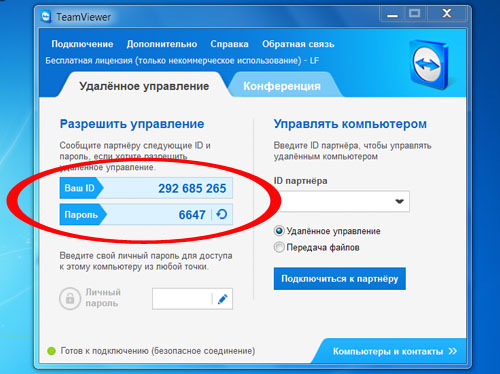 Нужно заполнить в соответствуем окошке ваш ID и ID компьютера к которому подключаемся. Таким образом подключение будет происходить только с тем кто нужен. Не стоит опасаться что кто угодно, знающий ваш ID сможет подключится. Это не возможно, ведь нужен еще один компонент.