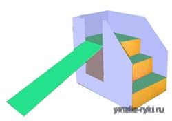 Когда у вас в наличии будут все детали и сопутствующие материалы для сборки, достаточно будет только собрать воедино весь этот конструктор. Проявите фантазию и можете усовершенствовать конструкцию. Добавить домик на верхней площадке, в ступеньках сделать ниши для хранения игрушек.