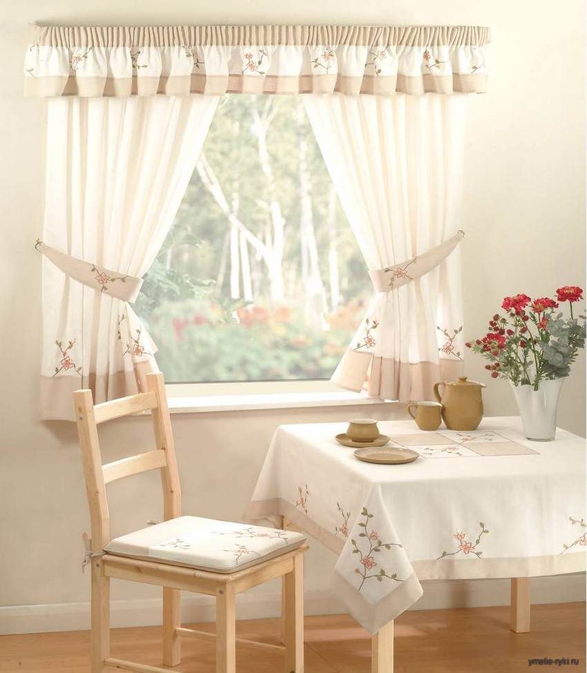 Одной из самых важных и посещаемых комнат в нашем доме является кухня. не кто не станет спорить, а особенно хозяйки, что от комфорта на кухне зависит многое, не говоря уже о практичности, удобства и функциональности. По этому к выбору дизайна кухни, мебели, бытовой технике каждая, уважающая себя хозяйка, подходит с особой тщательностью. Несомненно много можно и нужно будет купить, кое - что заказать... Но уют хочется творить собственными руками. Сегодня сотворим собственными руками такую важную деталь интерьера кухни как шторы. Конечно их можно купить готовом виде. И где полная гарантия, что они подойдут к дизайну комнаты. Да и творить куда приятней самому, чем покупать готовое, всё таки делаем мы вещи с любовью и положительная энергетика на долго поселиться в комнате. Таким образом кухня может превратиться не просто в место где готовят и принимают пищу, а в место где творят шедевры кулинарии и проводят семейные обеды, пьют чай и делятся впечатлениями.
