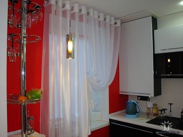 Для тех, кому не повезло с размерами кухни выбор ткани для штор немного по меньше, но не как не по хуже. Текстиль в таком случаи должен быть натурален. И не впадайте в уныние, во всём можно найти свои плюсы: уход за таким окном по проще, да и компактность - это зачастую синоним комфорту. Сделайте в таком случаи акцент на стили кухни и подберите шторы соответственно. Изощренность хай-тека подчеркнет римская штора, если остановили свой выбор на деревянной мебели то воздушная тюль будут как не когда кстати, а вот хлопчатобумажное светлое полотно идеально впишется при светлых стенах кухни.