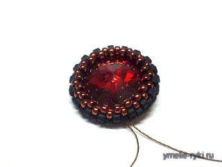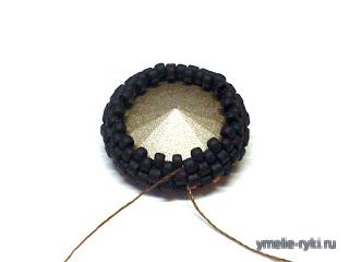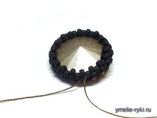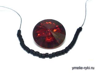 1. Для оплетки мы взяли риволи 14 мм соответственно схеме нам понадобится 36 шт. бисера Delica. Нанизываем его на капроновую нить.