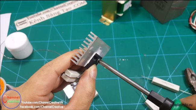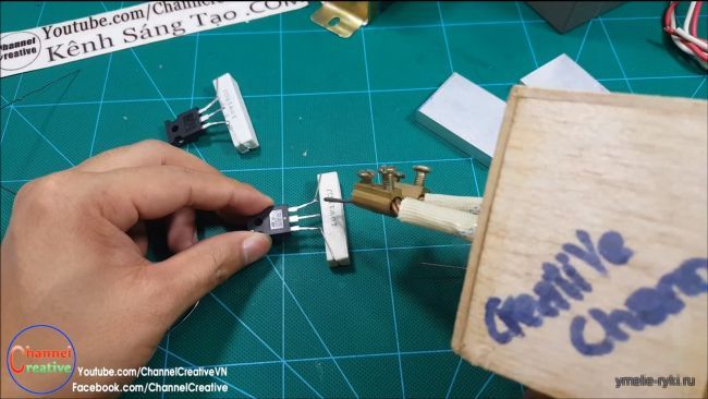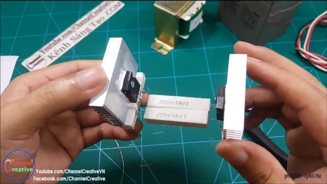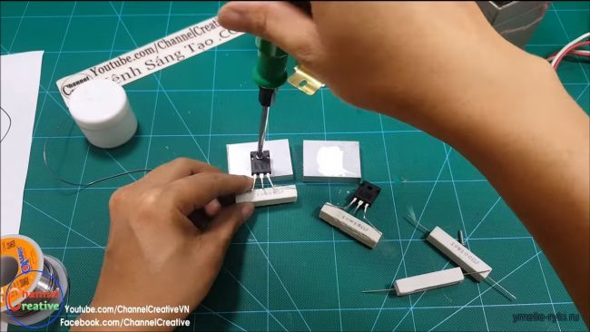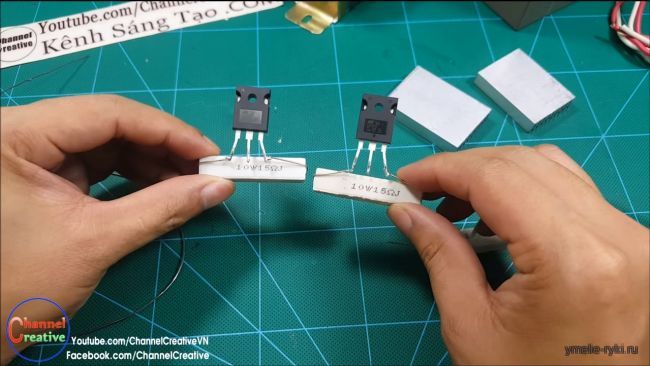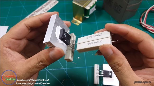 Берем транзистор и крепим его к резистору на 15 Ом, как видно на фото. Аналогичным образом крепим и второй транзистор.