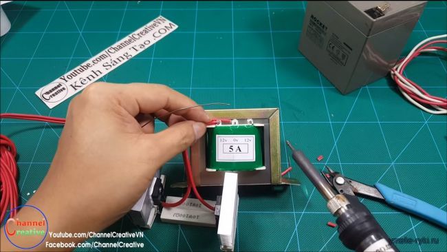 Список материалов: - трансформатор 12-0-12В на 5А;