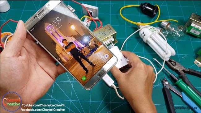 Также было принято решение попробовать подключить зарядку для мобильного. Телефон заряжается нормально.