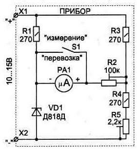 напряжения на аккумуляторе, но он может найти и другие применения,  Рис.1. Вольтметр с растянутой шкалой где требуется контролировать напряжение в интервале 10...15 В с точностью 0,01 В. Известно,