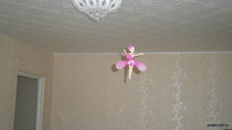 После всех проделанных процедур наша фея начинает свой полет. Она взлетает в верх и через некоторое время начинает опускаться в низ. Для того, что бы она снова поднялась достаточно всего лишь подставить под нее руку и она снова полетит ввысь. Если лопасти ударятся об препятствие в виде стенки или мебели, она автоматически отключается.