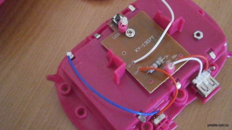 Заряжать можно прямо от компа, что очень таки удобно. На зарядке горит красный индикатор и при полном восстановлении сил феи он тухнет.
